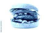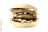 Appetizing hamburger on wooden cutting board. Pickles, onion, and cheddar cheese Healthy food.