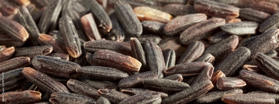 Close up of black rice, selective focus, natural background.