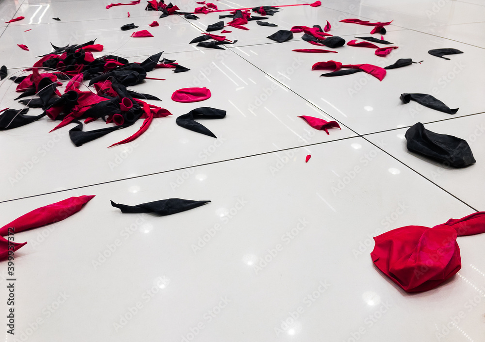 bursted balloons on floor after party