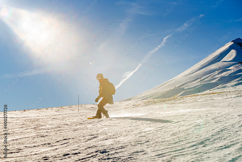People skiing on the ski slope. Kayseri, Panoramic view of Erciyes,Turkey.