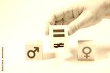 gender equality concept on wooden cubes. Concepts of gender equality. Hand flip wooden cube with symbol unequal change to equal sign