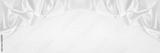 White abstract festive elegant background. Beautiful drapery of soft folds of fabric. Border. Luxurious silk satin background with copy space for your design. Wide banner. Wedding, anniversary concept