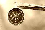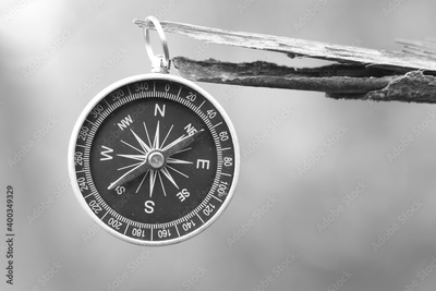 Classic navigation compass on natural background as symbol of tourism with compass, travel with compass and outdoor activities with compass