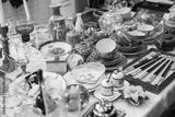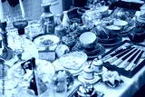 Kiev, Ukraine - December 19, 2020: silver dishes and dishes at a flea market