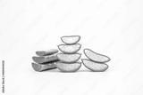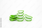 Slices of fresh aloe vera plant stacked and aloe vera stalk or leaves with water dropping isolate on white background.