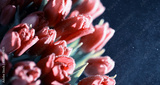 Bouquet of fresh flowers. Holiday gift to your loved one. Background St. Valentine's Day. Rose, tulip, iris flower arrangement.