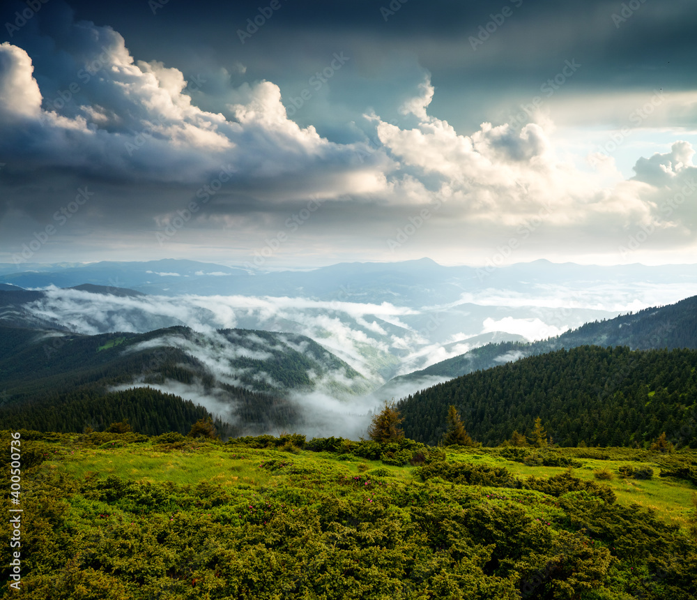 Splendid summer scene in morning alpine mountains.