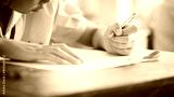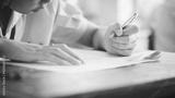 Students taking exam with stress in school classroom