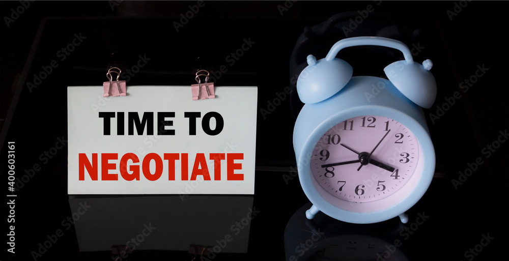 White card on the black background with text Time To Negotiate