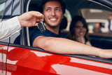 Crop dealer giving car keys to couple