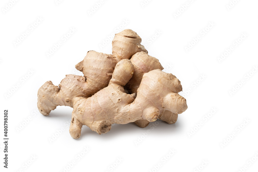 Ginger Root – Close-Up and Macro Detail of a Whole Raw Ginger Root – Isolated on White Background