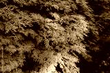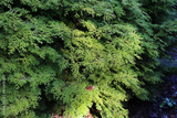Bright green thuja branches lit by sunlight