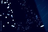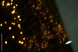 Holiday electric garlands yellow on dark background. city street Christmas decoration.
