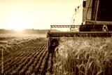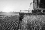 Combine harvester harvests ripe wheat. Concept of a rich harvest. Agriculture image