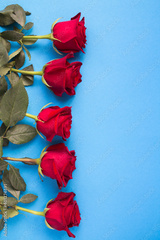 Floral background. Closeup on red roses on the blue background.
