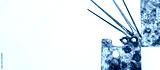 Art materials such as brushes of different sizes, palettes with vibrant embossed oil paints and a stretcher lie on a white background. View from above.