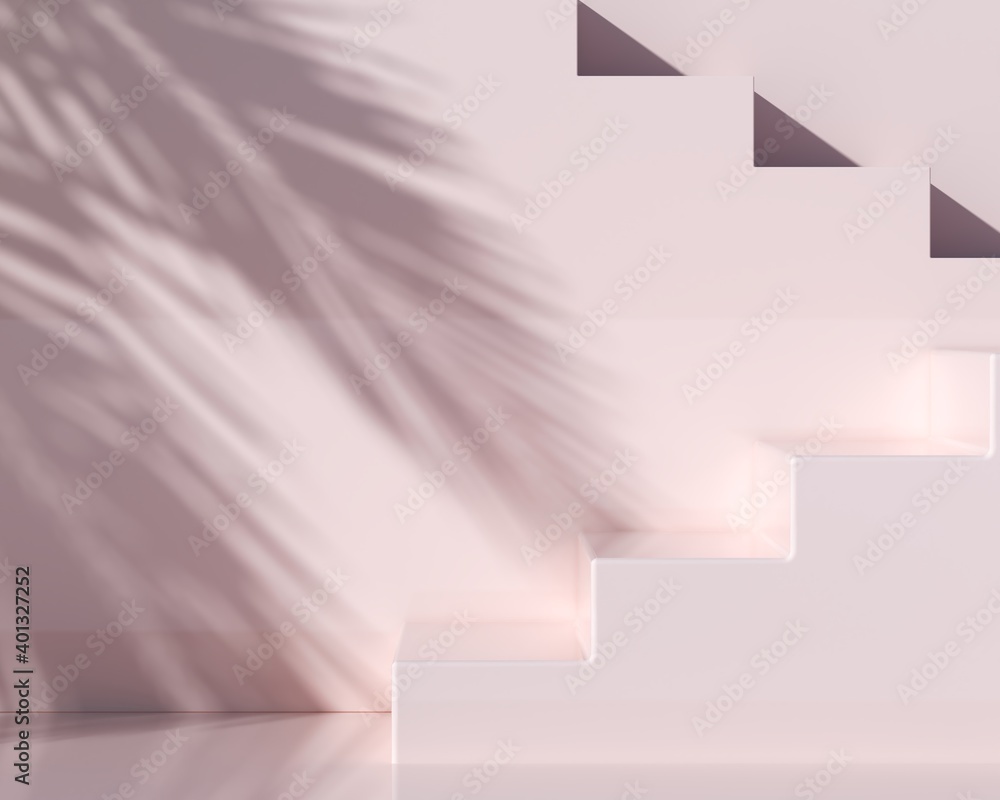 Minimal cosmetic steps background for product presentation. Sunshade shadow 3d render illustration.