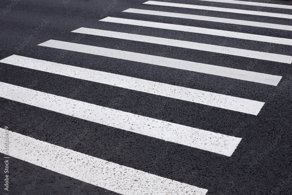 zebra crossing on the asphalt, white stripes, pedestrian crossing markings, safe road crossing