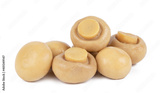 Group of tasty Pickled marinated mashrooms isolated on white background