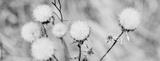 Dry thistle plant growing in the field. Natural floral banner. Selective focus.