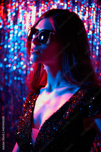 Fashion portrait of young elegant trendy woman in sunglasses.