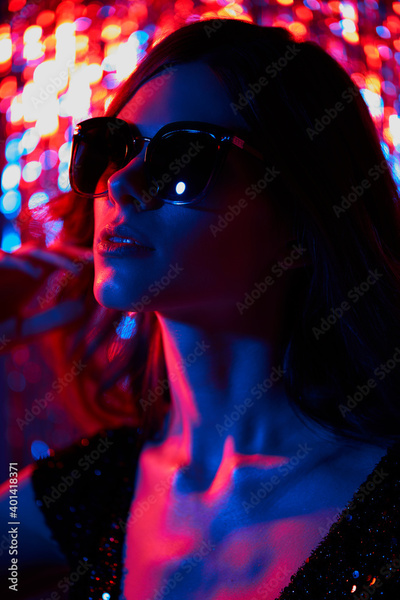 Fashion portrait of young elegant trendy woman in sunglasses.