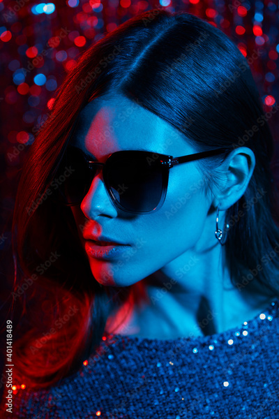 Fashion portrait of young elegant trendy woman in sunglasses.
