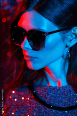 Fashion portrait of young elegant trendy woman in sunglasses.