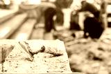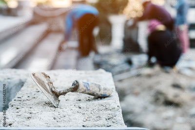 Trowel Plastered standing on the building with contractor in background