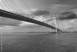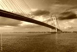 Vidyasagar Setu cable stayed bridge on river Ganges at Kolkata at sunset with moody sky.