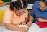 Asian disability child and Autism kid in special classroom with teacher