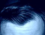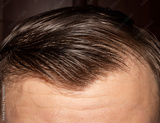 Wet, combed hair.Dark-haired background.Sparse brown hair of men.