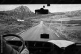 Focus on view from inside adventure car or camper van on amazing cinematic scandinavian landscape. Travel on epic road trip through mountains. Nomadic vanlife lifestyle. Life on the road