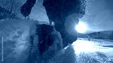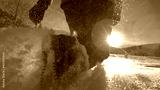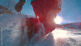 LOW ANGLE: Unrecognizable cheerful young woman runs into the deep powder snow.