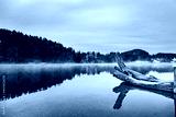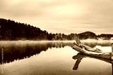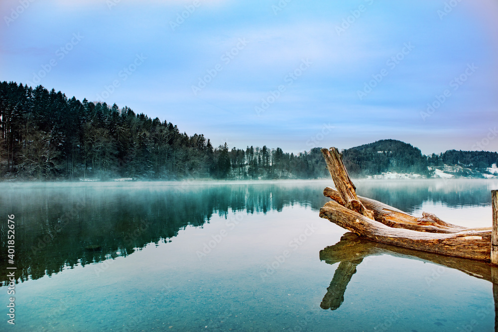 dead tree in the lake with tranquil scene. Copy space