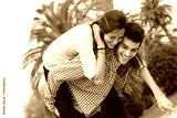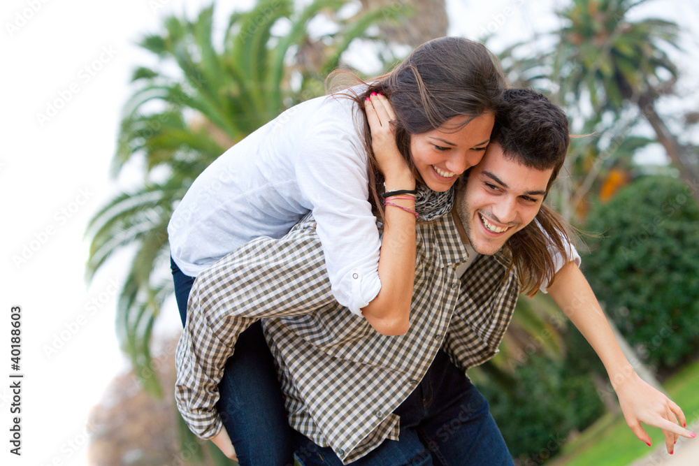 Cute girl piggybacking on boyfriend.
