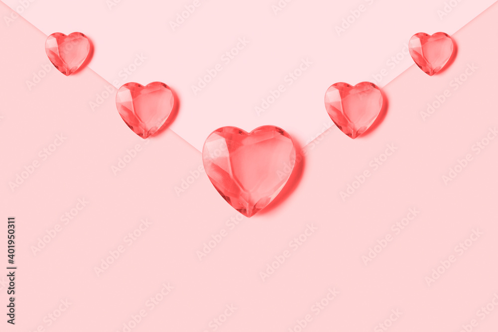 Envelope with diamond hearts for Valentine’s day or wedding.