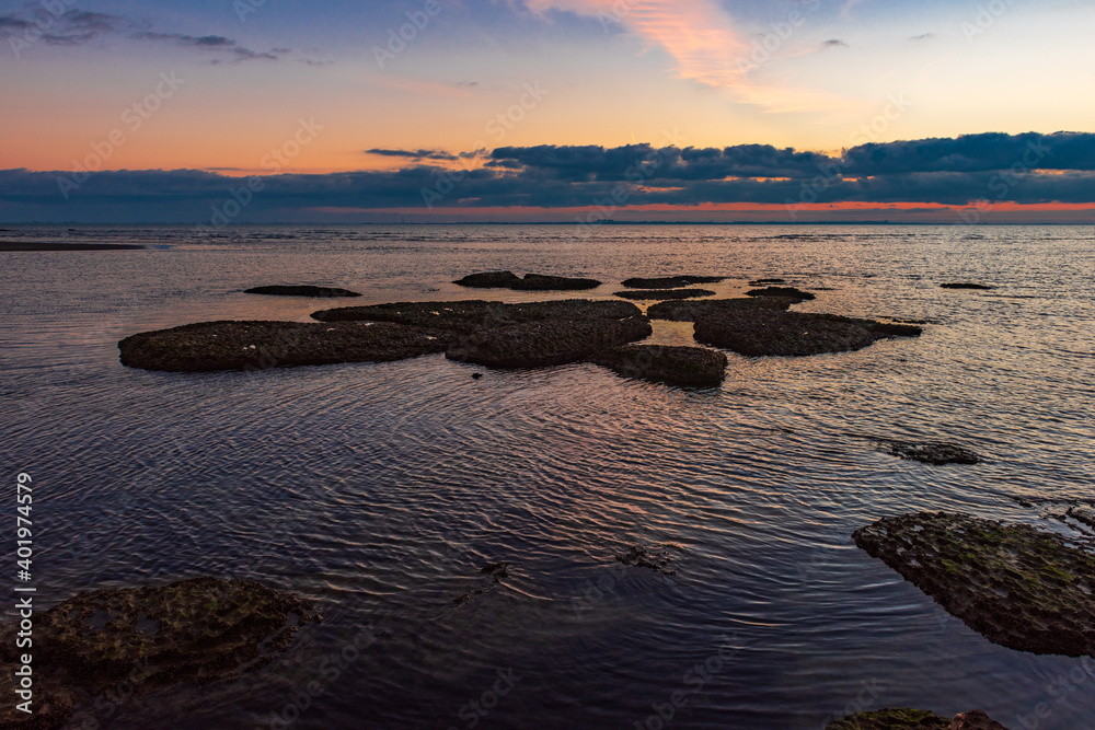 Colorful sunrise on the rocky coast