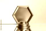 cylinder gold luxury podium on white background with mirror, product pedestal display for presentation, mock up podium show of beauty cosmetic or jewelry