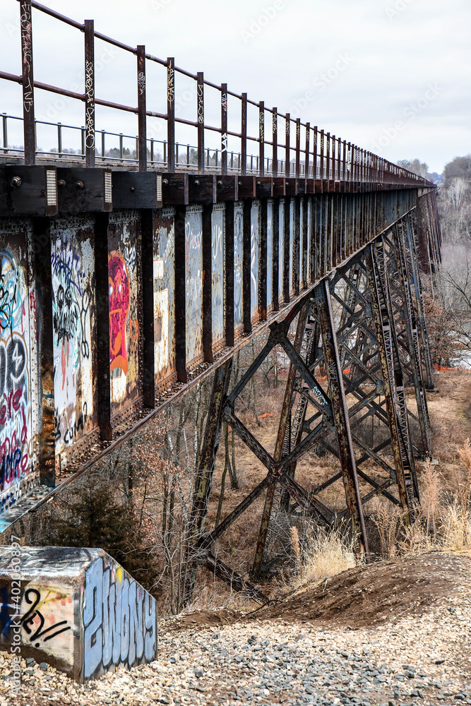 Empty railway bridge and train tracks