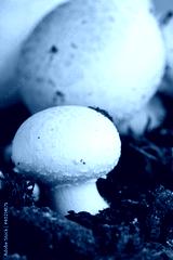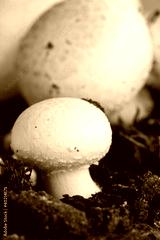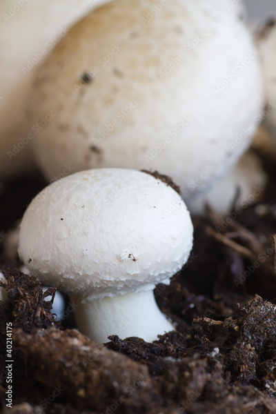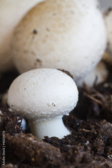 Growing button (field) mushrooms in a natural soil