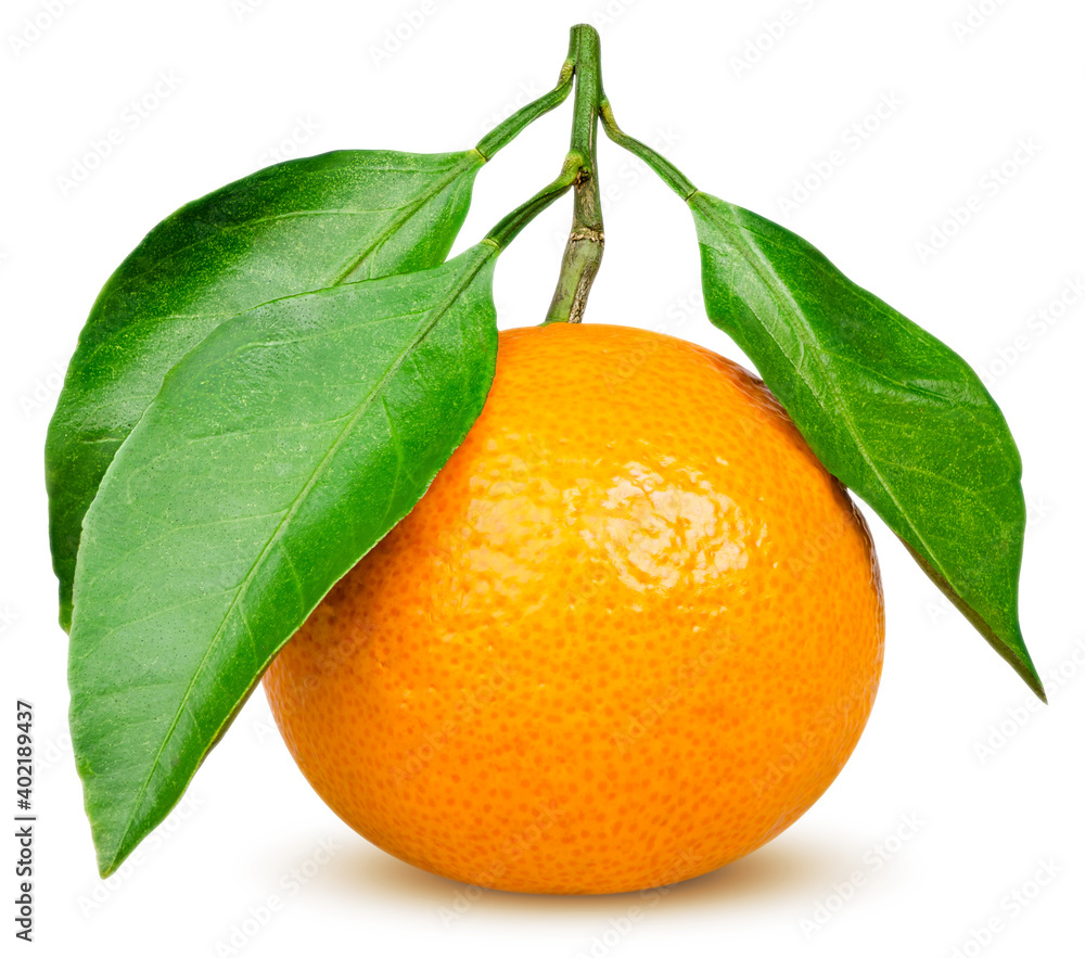 Isolated tangerine. One whole tangerine fruit with leaves isolated on white background with clipping path
