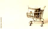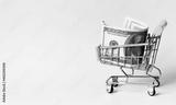 grocery cart with dollars banknotes isolated on white. can be used as a concept: for financial news