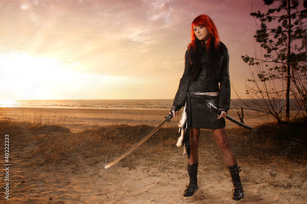 beautiful young asian female warior
