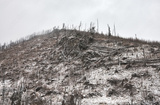 Snow covered hill with fallen trees, Tatra National Park, Poland.