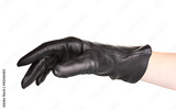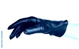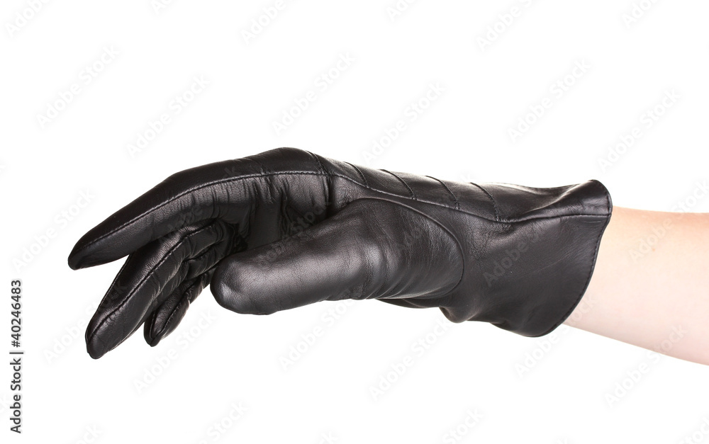 women hand in black leather glove isolated on white