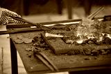 blacksmith forge with red hot coals