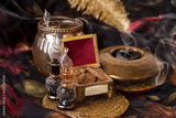 Agarwood, also called aloeswood, essential oil and burning incense chips