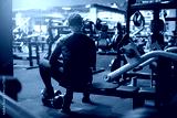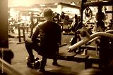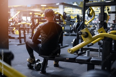 A male bodybuilder starts exercising in the gym. Weight training concept.