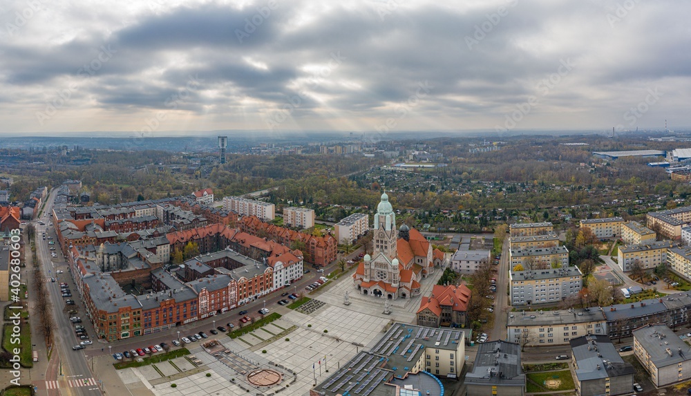 Aerial view of the Ruda Slaska city center. Upper Silesia. Poland.